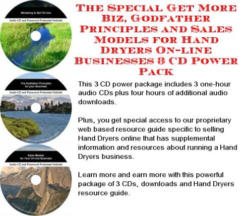 Hey Guys, I hope today is your lucky day. This morning I will inform you about The Special Get More Biz, Godfather Principles and Sales Models for Hand Dryers On-line Businesses 3 CD Power Pack, this is a popular product at this month. Many people searching it and they hope to get the lowest price. I'm here to tell you that the lowest price for The Special Get More Biz, Godfather Principles and Sales Models for Hand Dryers On-line Businesses 3 CD Power Pack are available on amazon. Most of customer was satisfied with the quality of The Special Get More Biz, Godfather Principles and Sales Models for Hand Dryers On-line Businesses 3 CD Power Pack. If you want to know how much discount that you get and read the customer review, You can view it from Landing Page comes from Amazon via link above.